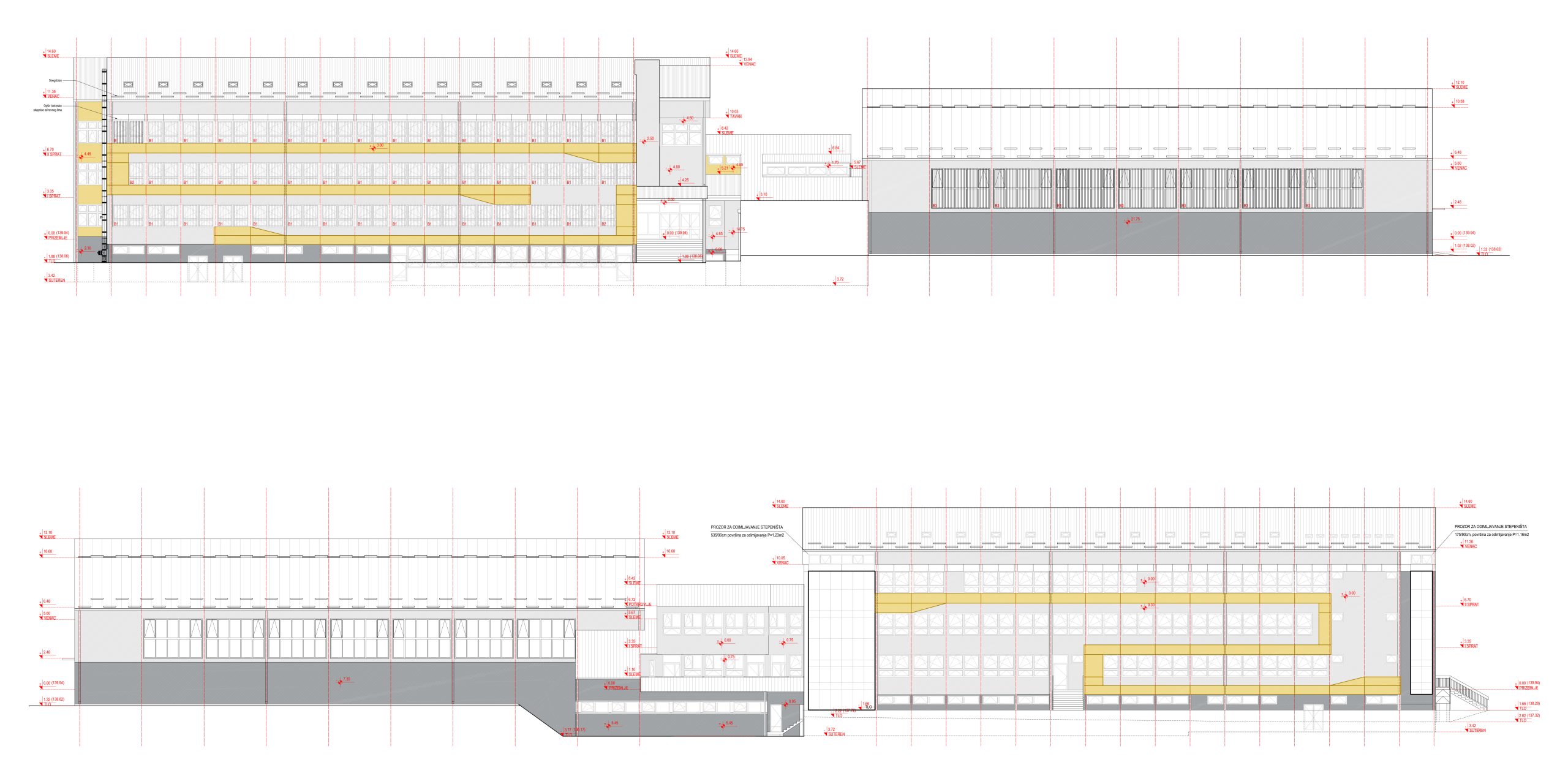 The project of reconstruction and extension of the primary school “Karađorđe” in Rača represents the transformation of the existing building, which has since been expanded by the construction of an annex with a sports hall. With this intervention, the space was improved by adding a swimming pool and adapted to meet the needs of modern use.