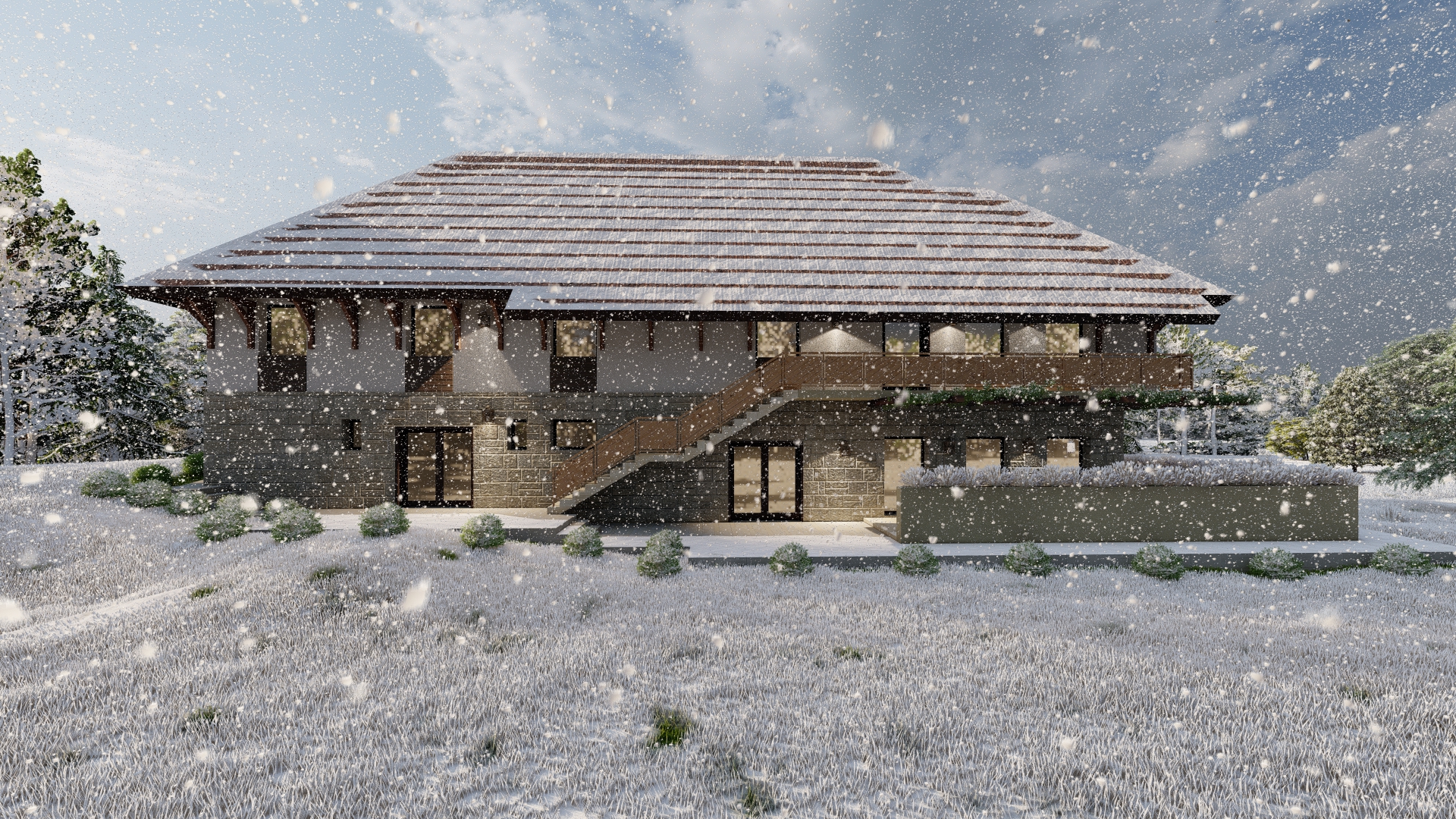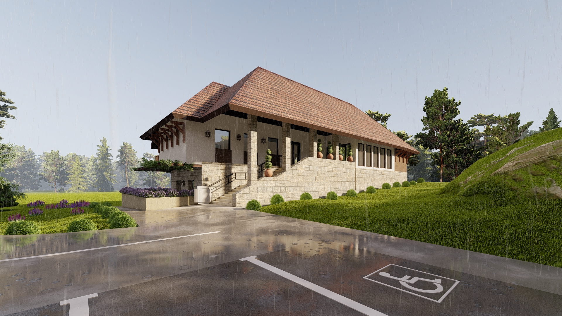 Arhitektonsko oblikovanje objekta je usklađeno sa postojećim objektom u smislu poštovanja narodnog graditeljstva a sve u skladu sa odredbama iz Prostornog plana područja posebne namene Radan. Obrada fasade suterena je od lomljenog kamena dok je fasada prizemlja malterisana sa dodacima drvene obloge. Viševodni kosi krov sa strehom od 1,15m i vidljivim drvenim konzolama u kombinaciji sa pergolama koje u budućnosti mogu biti upletene vinovom lozom, daće objektu poseban pečat pete fasade. Sam objekat od kamena, drveta i umirenim delovima bele fasade sa dominantnom strehom, sa Crkvom brvnarom u blizini i velikom količinom zelenila, predstavljaće novi sistem vrednosti za razvoj čitavog područja koje se nalazi u okolini Proloma.