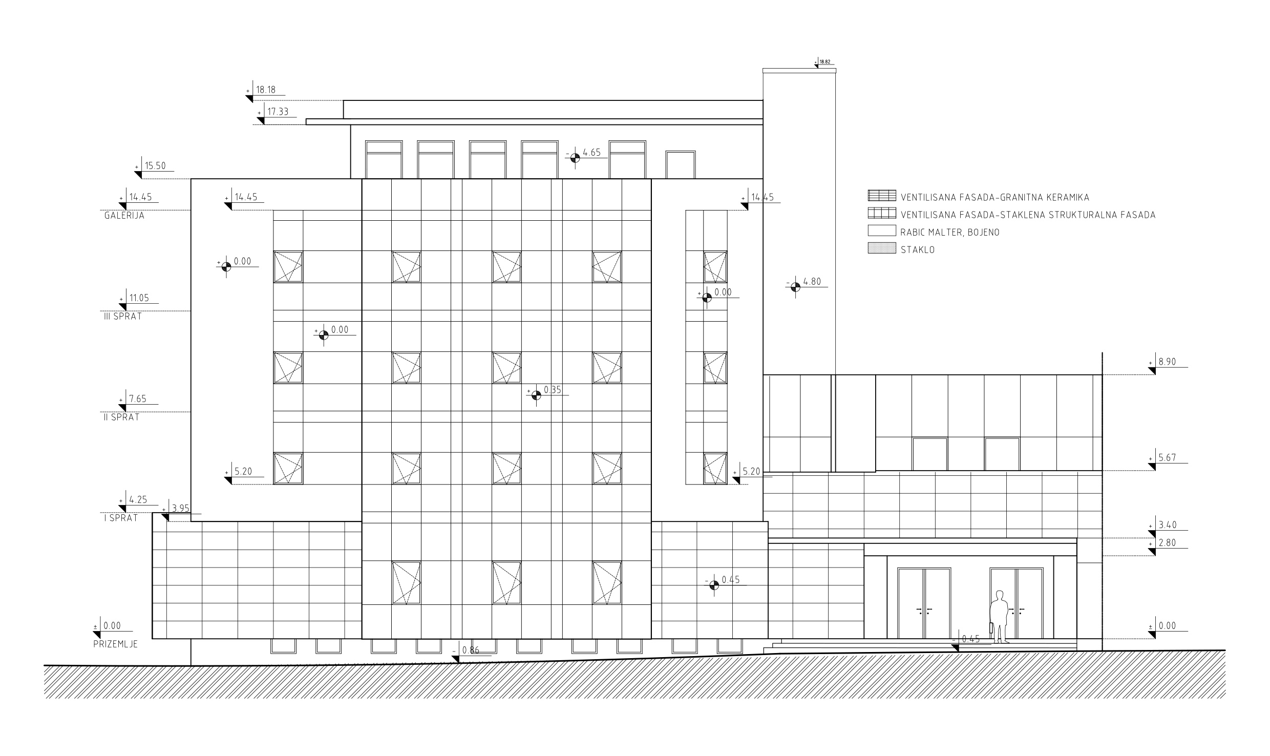 Arhitektonsko oblikovanje objekta je preuzeto i bazirano je na postojećem idejnim rešenjem. Formiranjem staklenog kubusa na jugoistočnoj strani postojeći arhitektonski sklop, koji pripada periodu moderne sa početka šezdesetih, je adaptiran sa tendencijom ka Hi-tech arhitekturi. Dodavanjem kružnog aneksa na severozapadnoj strani razbijena je postojeća pravuogana osnova kako u horizontalnom tako i u vertikalnom volumenu. U tom smislu je došla do izražaja prepoznatljiva unutrašnja orgnaizacija, koja već na prvi pogled posetiocima nagoveštava da se radi o objektu kulture.